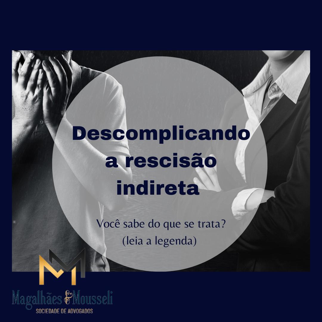 Ler maisA rescisão indireta é o encerramento do contrato de trabalho por parte do empregado em razão de uma falta grave cometida pelo empregador, ou seja, seria uma rescisão por “justa causa” mas aplicada pelo empregado em face do empregador.